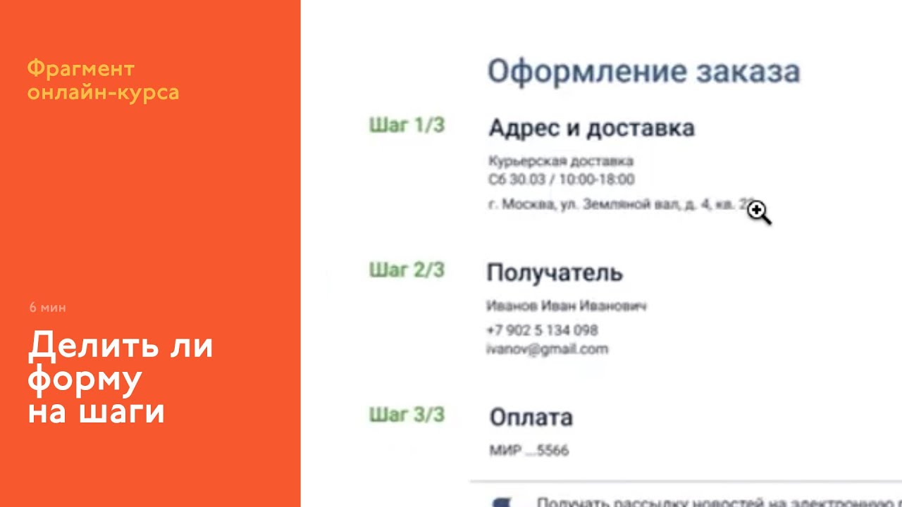 Илья Бирман На интерфейсном курсе: вопрос о грани, после которой нужна пошаговость Участница курса спрашивает, как найти грань, после которой длинную форму пора переделать на пошаговую